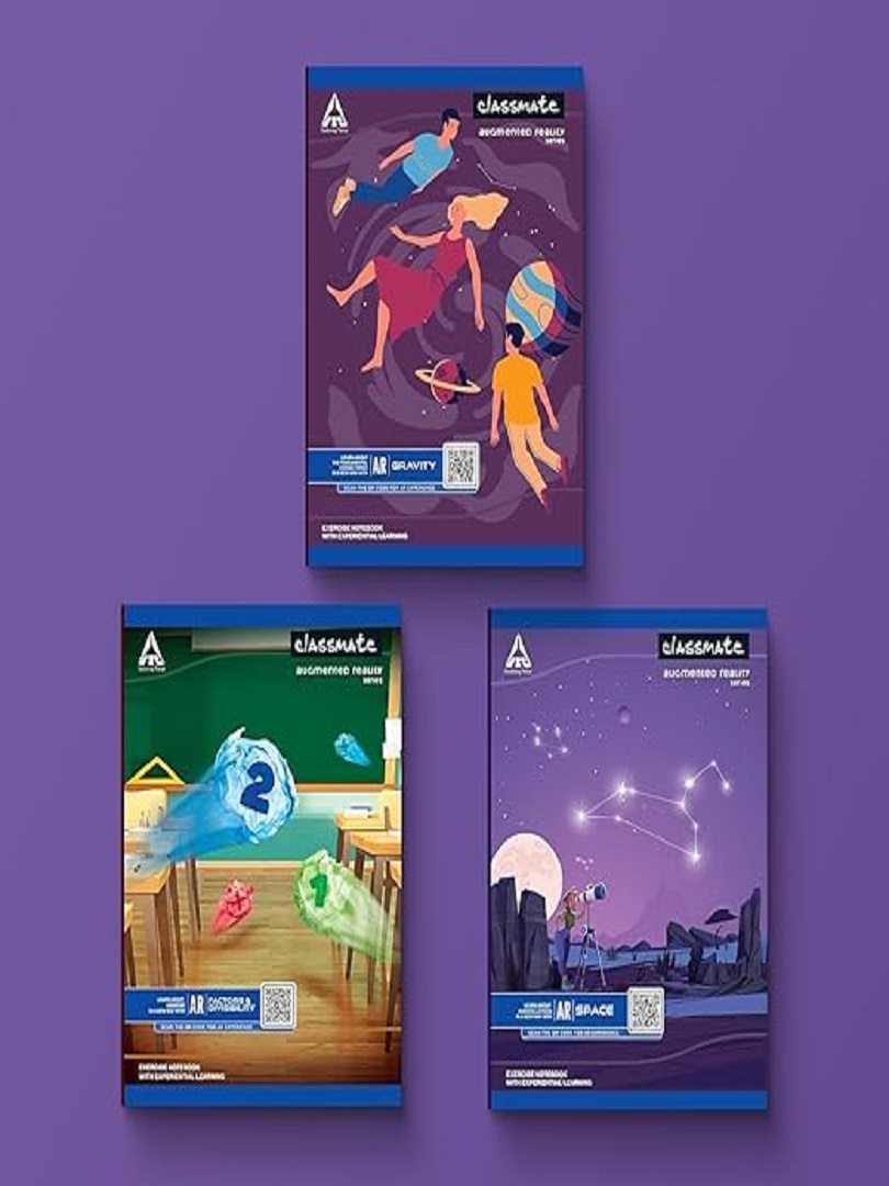 Classmate Augmented Reality Notebooks – 140 Pages | Pack of 3 Long Size Ruled Notebooks