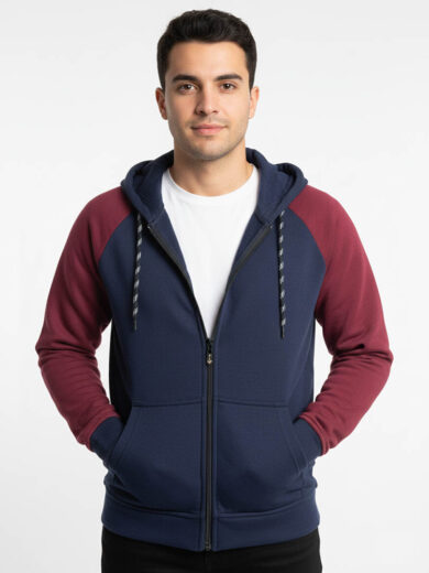 Navy Blue with Maroon Sleves Hoodie